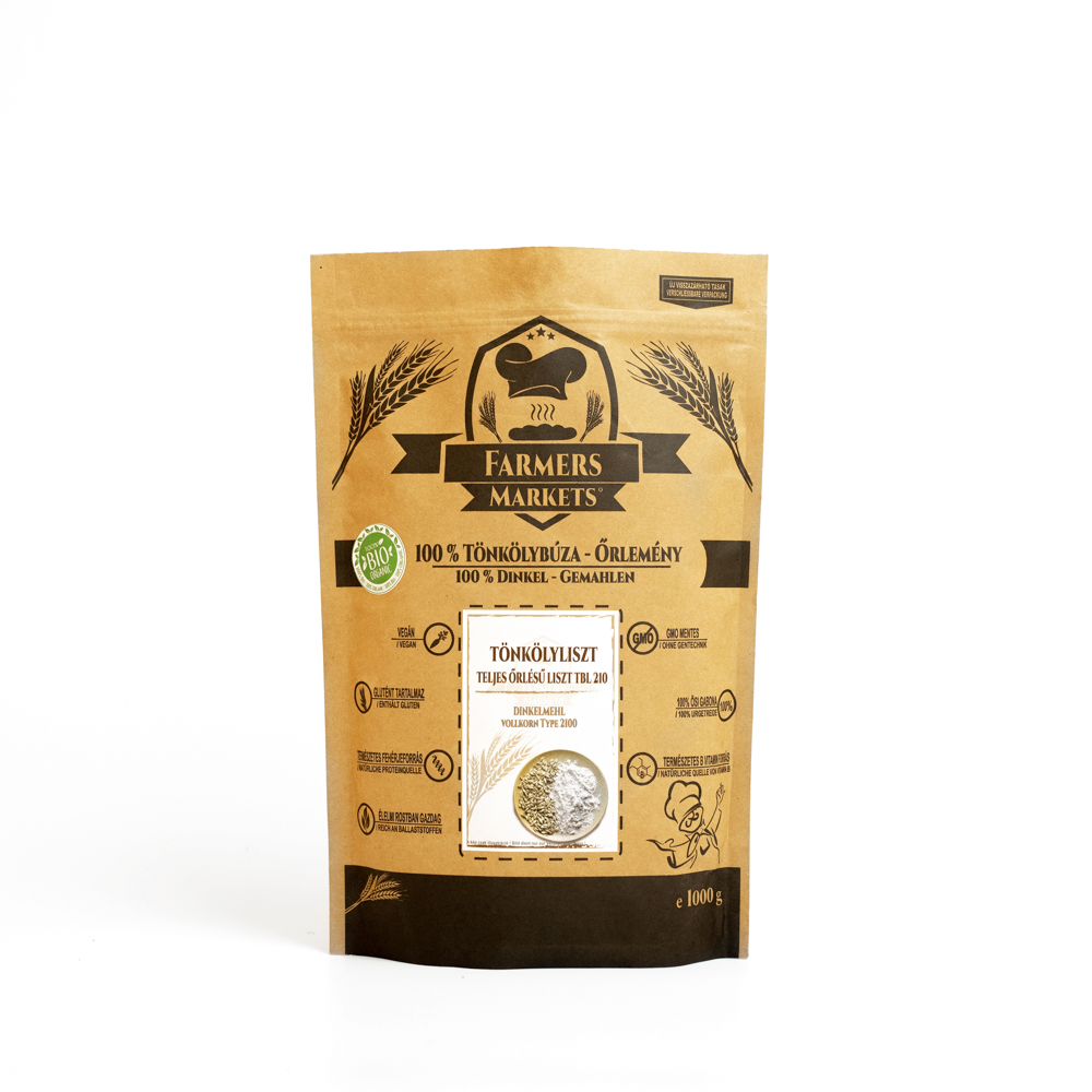 A bio tönkölybúza kiváló beltartalmi és kiemelkedő élettani hatással rendelkező, ősi gabona. A Farmers Markets® teljes kiőrlésű bio tönkölyliszt alapanyaga kizárólag prémium minőségű tönkölybúza. A tönkölybúzaszemek minden lényeges részét tartalmazza: a korpát, a csírát és a magbelsőt is. A tönkölybúzából készült termékeink pozitív élettani és kiváló beltartalmi tulajdonságokkal rendelkeznek.