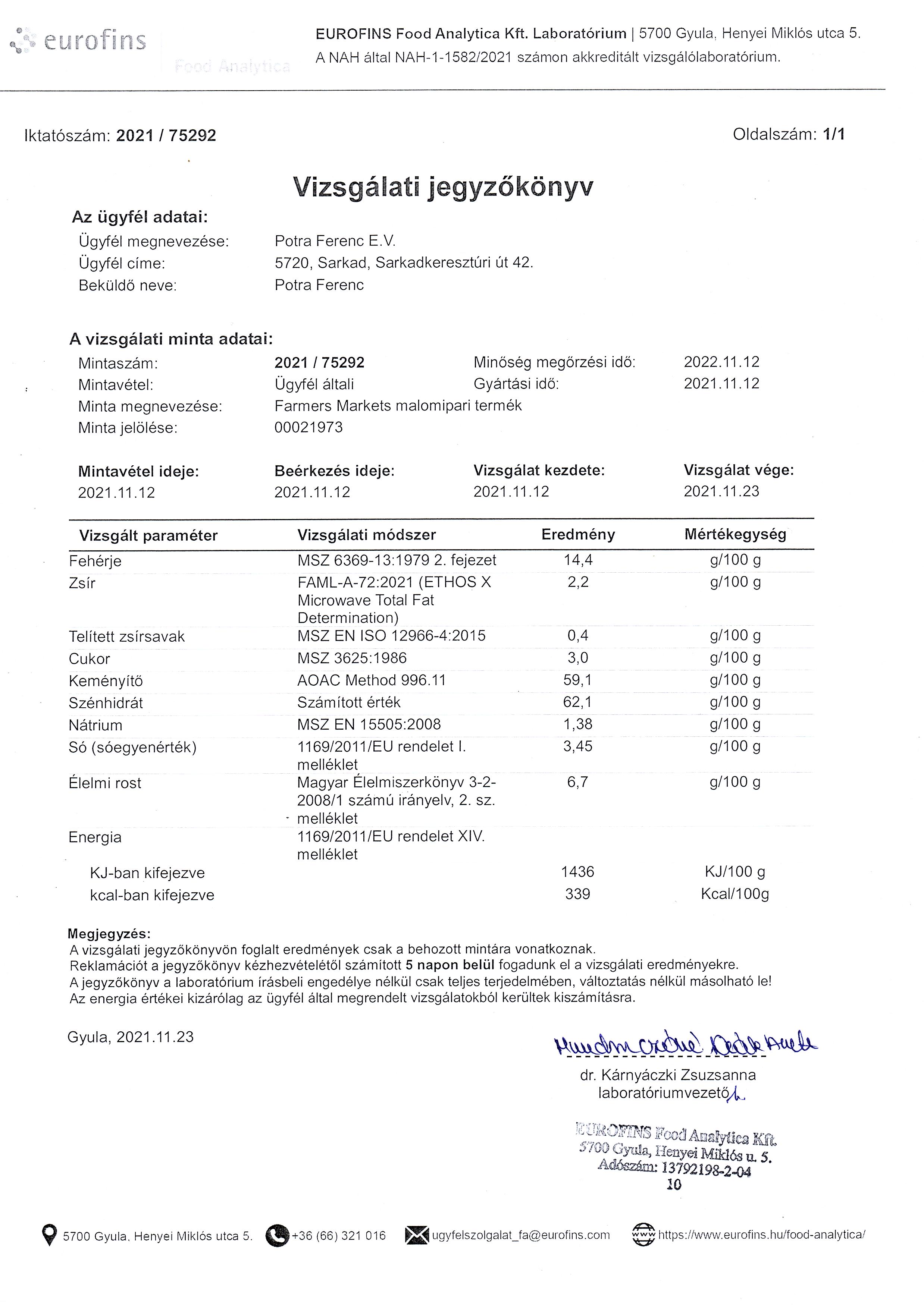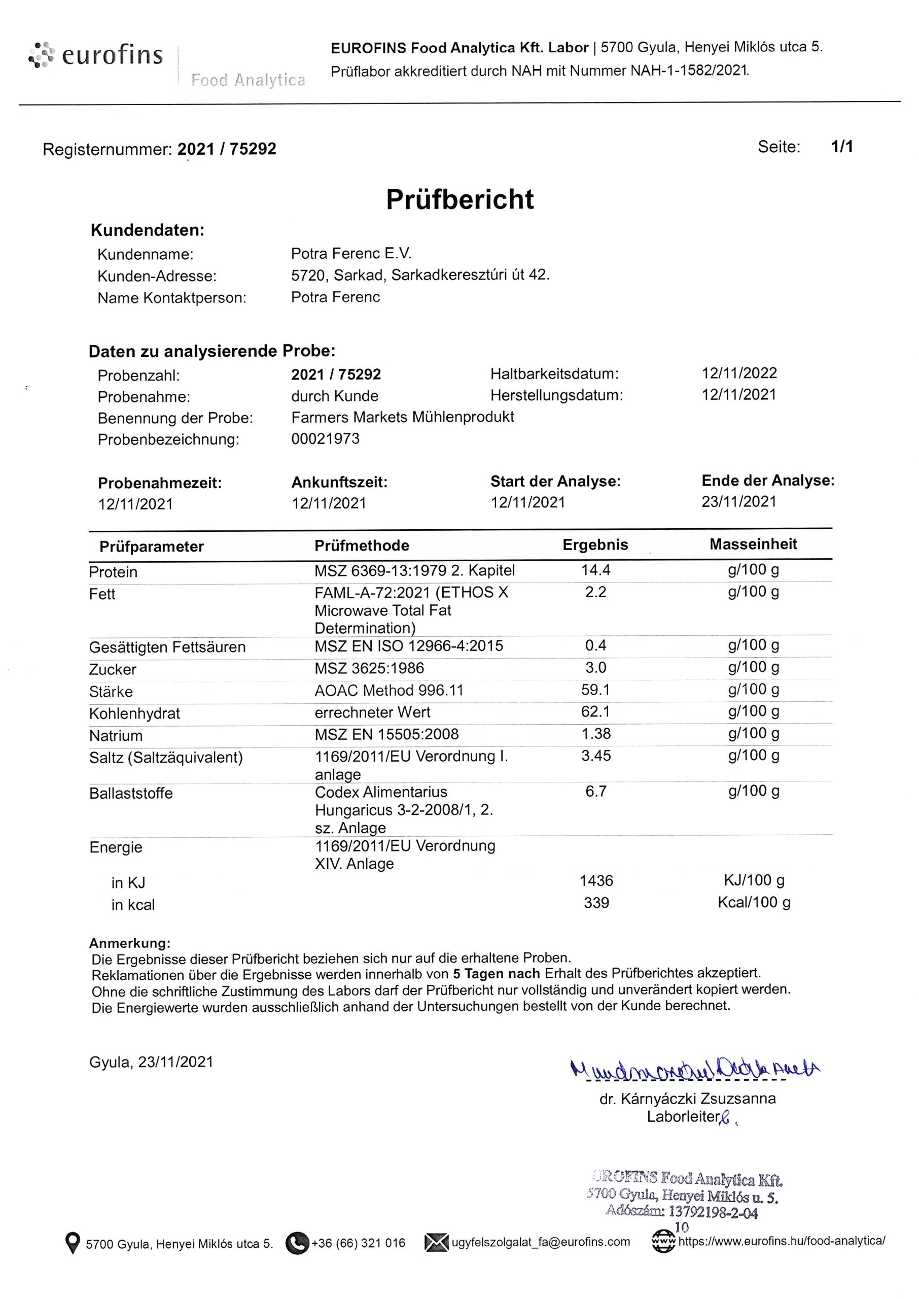 Ajánlott: mindennapi fogyasztásra kenyérsütéshez, bagettek, pizzák, zsemlék, kiflik készítéséhez.